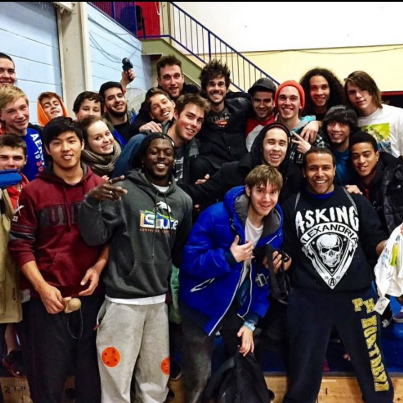 Athletes that are attracted to tricking are highly competitive in nature, and in some cases come from a background where there is less education, and potentially difficult upbringings. The desire to meet others and fit in and learn is a natural leap for many learners to make and so Tricking is rooted in community building.